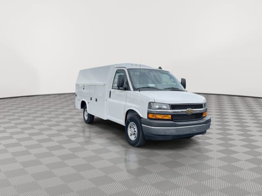 Summit White 2025 Chevrolet Express 3500 Knapheide KUV Express Body.