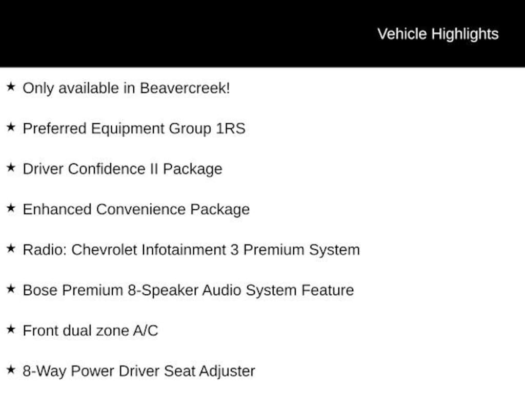 Only available in Beavercreek! - Retired Service Loaner - AWD, 6-Way Power Front Passenger Seat Adjuster, 8-Way Power Driver Seat Adjuster, Adaptive Cruise Control, Bose Premium 8-Speaker Audio System Feature, Driver Confidence II Package, Enhanced Automatic Emergency Braking, Enhanced Convenience Package, Front dual zone A/C, HD Surround Vision, Heated Driver & Front Passenger Seats, Heated Rear Outboard Seating Positions, Heated steering wheel, Memory Settings, Power Driver Lumbar Control, Power Liftgate, Power Panoramic Tilt-Sliding Sunroof, Power Tilt & Telescoping Steering Column, Preferred Equipment Group 1RS, Radio: Chevrolet Infotainment 3 Premium System, Rear Camera Mirror, Rear Camera Mirror Washer, Safety Alert Seat, Ventilated Driver & Front Passenger Seats, Wheels: 21 High Gloss Black w/Machined Face. 19/26 City/Highway MPG