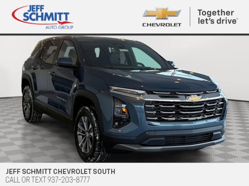 Only in Miamisburg!!! $1,617 off MSRP! Lakeshore Blue Metallic 2026 Chevrolet Equinox LTEquinox LT, 4D Sport Utility, 1.5L DOHC, CVT, FWD, Lakeshore Blue Metallic, Black Cloth, 2-Way Power Driver Lumbar Control Seat Adjuster, Autosense Hands-Free Programmable Power Liftgate, Brake assist, Cabin Humidity and Windshield Sensor, Convenience Package II, Driver 8-Way Power Seat Adjuster, Dual-Zone Automatic Climate Control, Electronic Stability Control, Emergency communication system: OnStar and Chevrolet connected services capable, Evotex Seat Trim, Front Bucket Seats, Front Fog Lamps, HD Surround Vision, Heated door mirrors, Heated Driver and Front Passenger Seats, Heated steering wheel, Heated Wiper Park, Illuminated entry, Intermittent Front Rain-Sensing Wipers, Navigation System, Overhead Sunglass Storage, Panic alarm, Power door mirrors, Preferred Equipment Group 1LT, Premium audio system: Chevrolet Infotainment 3, Programmable Universal Home Remote, Radio: 11.3 Diagonal Advanced Color LCD Display, Rear Pedestrian Alert, Rear window wiper, Remote keyless entry, Safety and Technology Package, Security system, SiriusXM with 360L Trial Subscription, Spoiler, Steering wheel mounted audio controls, Telescoping steering wheel, Tilt steering wheel, Traffic Sign Recognition, Wheels: 17 Grazen Metallic Machined-Face Aluminum, Wireless Phone Charging For Portable Devices. 26/29 City/Highway MPGAll qualifying vehicles include the Jeff Schmitt Advantage: Complimentary Vehicle Maintenance for 1 additional year which includes 2 free oil changes and 2 free tire rotations; we also will provide you with a complimentary loaner vehicle while we work on your vehicle so you don't have to wait; Auto Deductible Reimbursement when you utilize any of our 4 conveniently located Collision Centers; ID Theft Restoration assistance; 72 Hour Exchange Policy; our Best Value Guarantee; Elite Vehicle Delivery which includes two sets of keys, a full tank of gas, and a vehicle that has been detailed just for you; and a free CARFAX report on any pre-owned vehicle in our inventory. (See dealer for details.) *Prices do not include applicable tax, title, license, doc fees, or any dealer adds. Pricing incentives listed cannot be combined with any special manufacturer APR rates.*